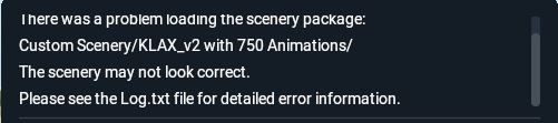 "There was a problem the scenery package: Custom Scenery/KLAX_v2 with 750 Animations/ The scenery may not look correct. Please see the Lod.txt for detailed error information"