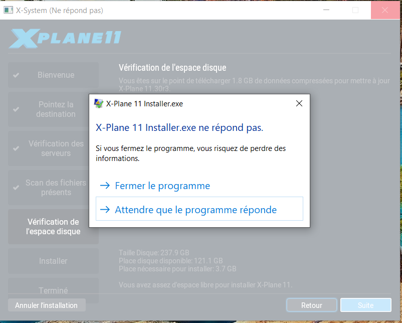I'm trying to send you my X-Plane install Log.I hopeit works and that you can help me install the update 11.30r3. I'm bloked to "check disk space"